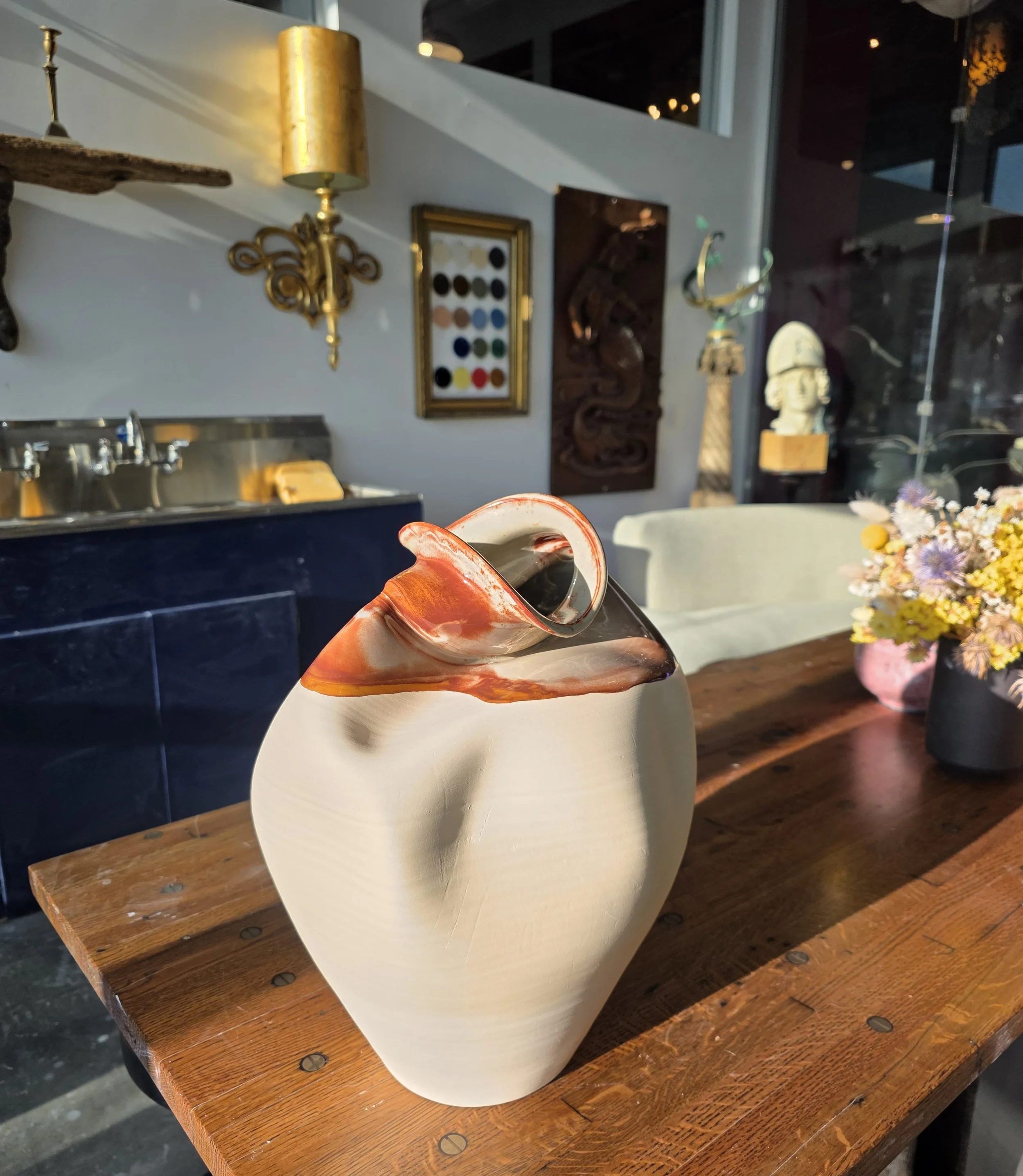 We invite you to take part in Embracing the Vase, a pottery experience where you will physically hug and shape a pre-made clay vase. Your embrace creates natural impressions in the clay, resulting in a one-of-a-kind ceramic piece fired and finished by our studio.