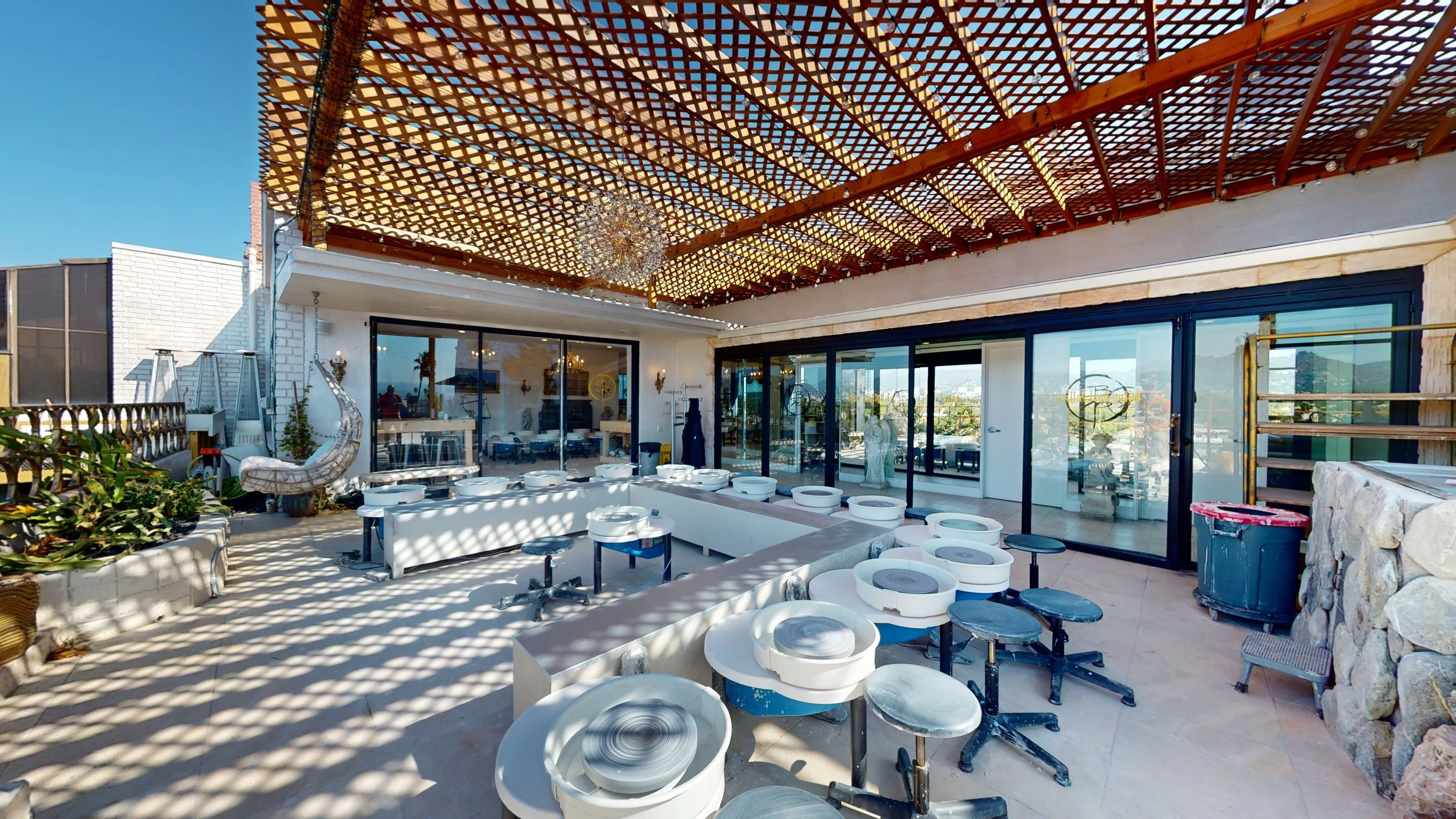 CLEAN UP EVERYTHING YOU USE AND TOUCH: This is a shared space - clean up after yourself! Do not leave sinks, equipment and wedging tables a mess. Gather up all your trimmings, clean your wheel and stool, sponge any spills at the glazing area, wipe down wedging tables and surfaces you used, wash all tools and brushes thoroughly, rinse sponges out, take clay chunks out of the sink.. etc