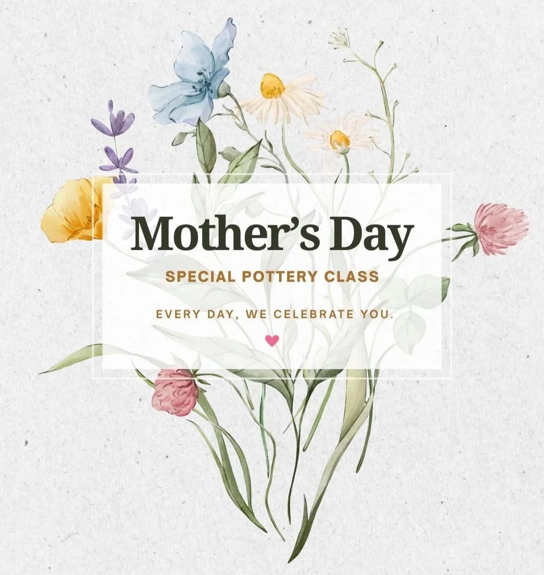 Our Mother’s Day special wheel-throwing class includes clay, tools, choice of glaze color, and firing of your pieces. .After a quick clean-up, you’ll choose from a variety of glaze colors. Your pots stay at the studio and staff handle all the post-production of your pieces - glazing and firing. Once everyone’s pots are finished, the staff will contact you for pick-up.